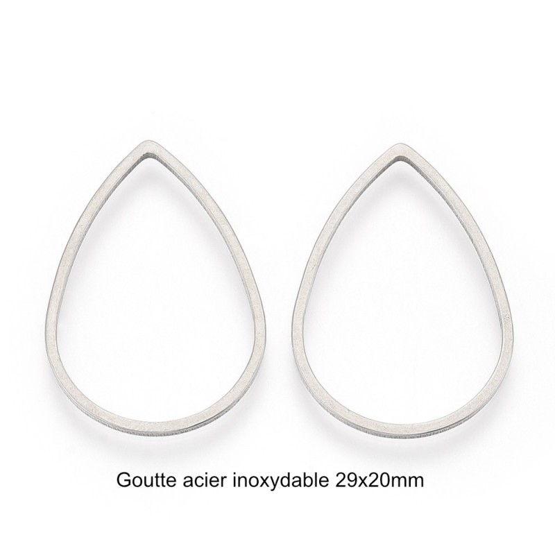 connecteur goutte acier inoxydable intérieur creux 29x20mm