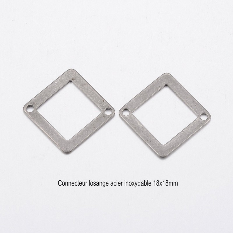 10 connecteurs losange acier inoxydable plat 18mm