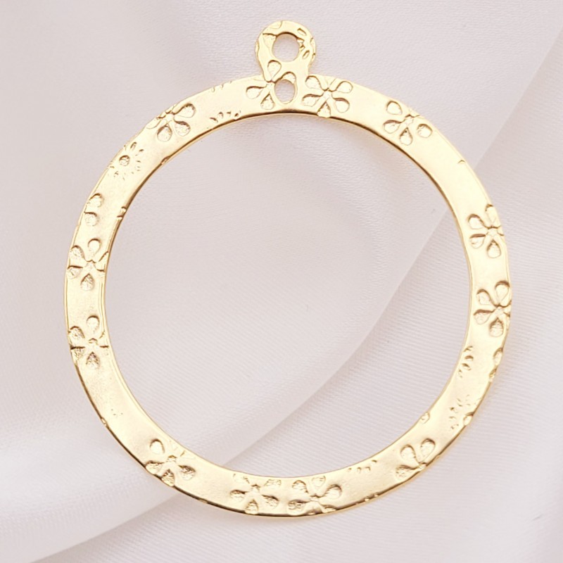 pendentif acier inoxydable or rond martelé fleur