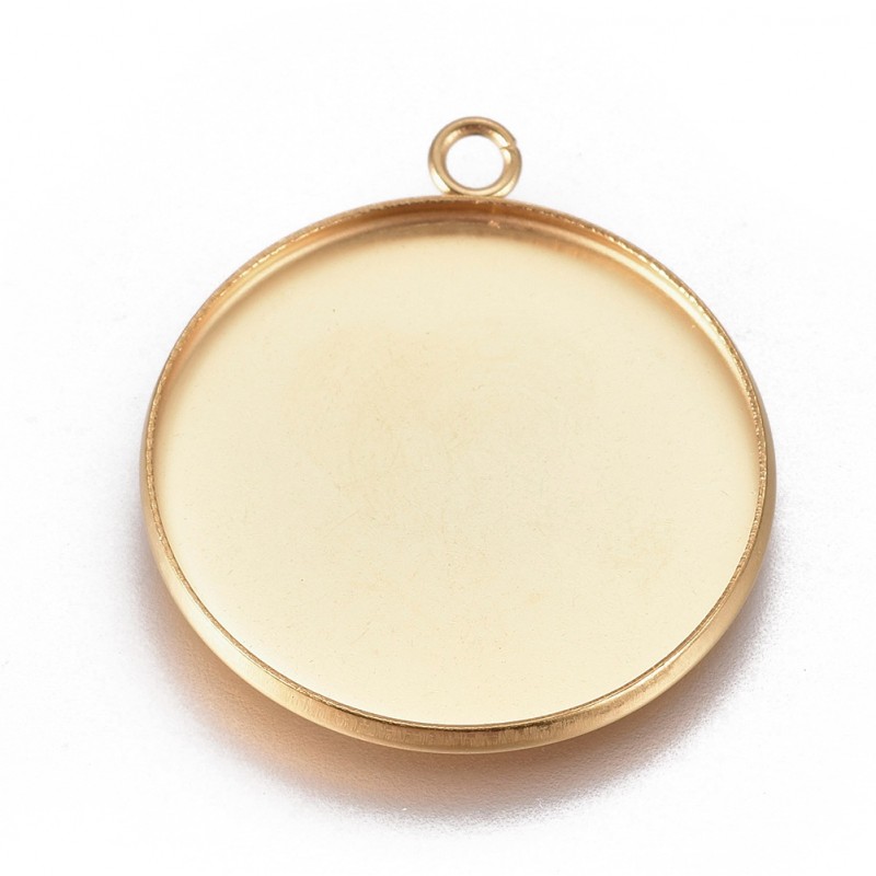 4 supports pendentif cabochon rond acier plaqué or 24kt