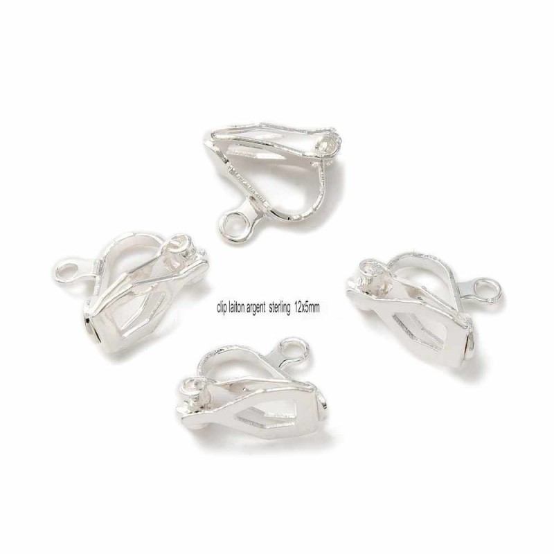 1paire boucle d'oreille clip laiton argent sterling