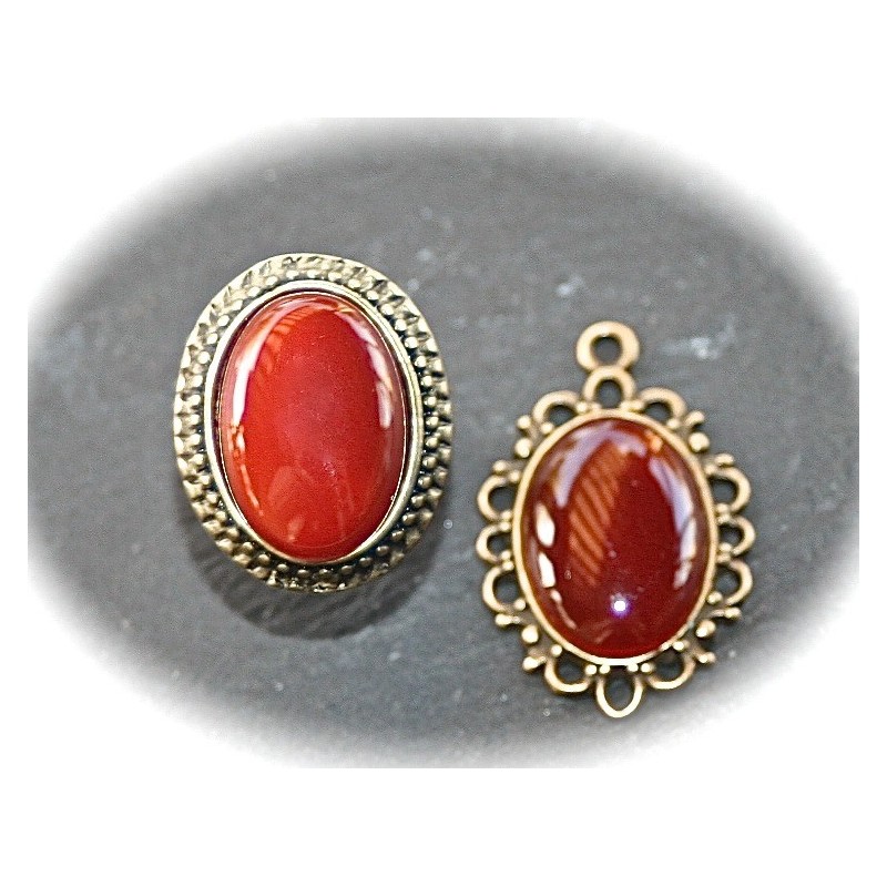 x1 cabochon pierre semi-précieuse cornaline orangé /brun ovale 13x18mm