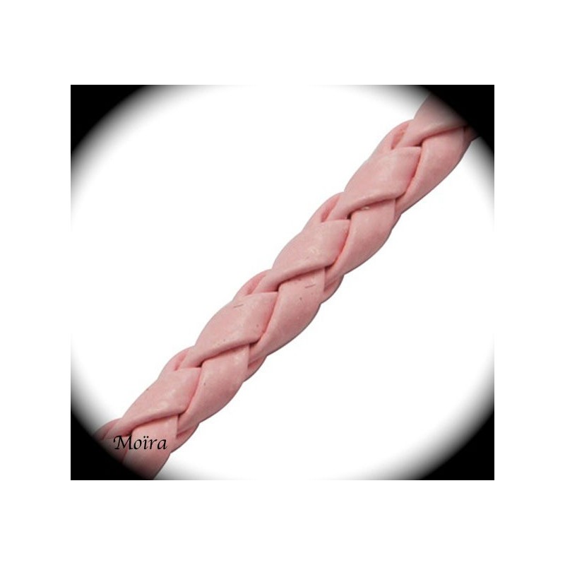 1mètre de cordon rose layette simili cuir tressé épaisseur 3mm, cordon tressé teint rose clair en simili cuir epaisseur 3mm pour insertion d'embout argenté ou a ressort diametre 2,5/3mm