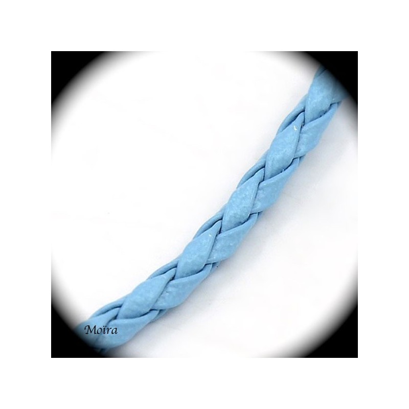 1mètre de cordon bleu ciel simili cuir tressé épaisseur 3mm, cordon tressé teint bleu ciel en simili cuir epaisseur 3mm pour insertion d'embout argenté ou a ressort diametre 2,5/3mm