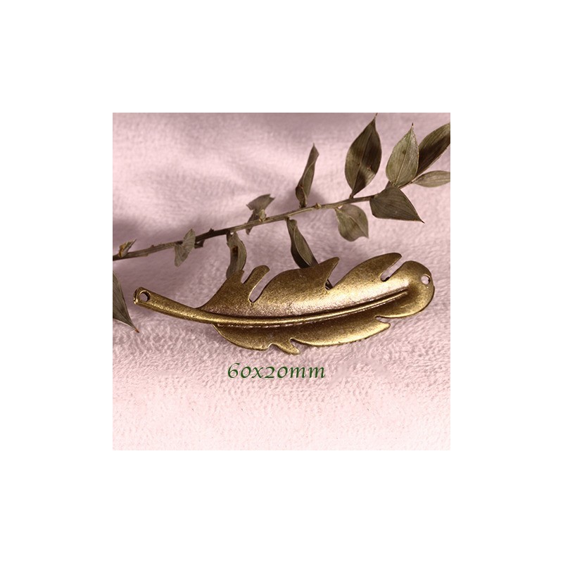 2 connecteurs grande feuille bronze relief lisse 60x20mm