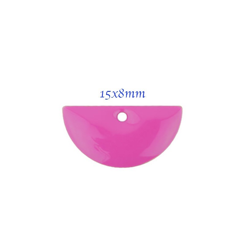 2 sequins émaillé laiton fuchsia demi lune réversible 15x8mm