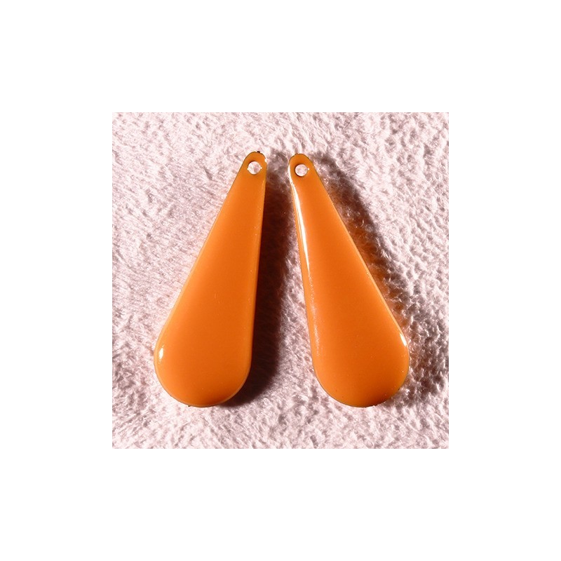2 sequins emailles laiton longue goutte orange 27x10mm réversible