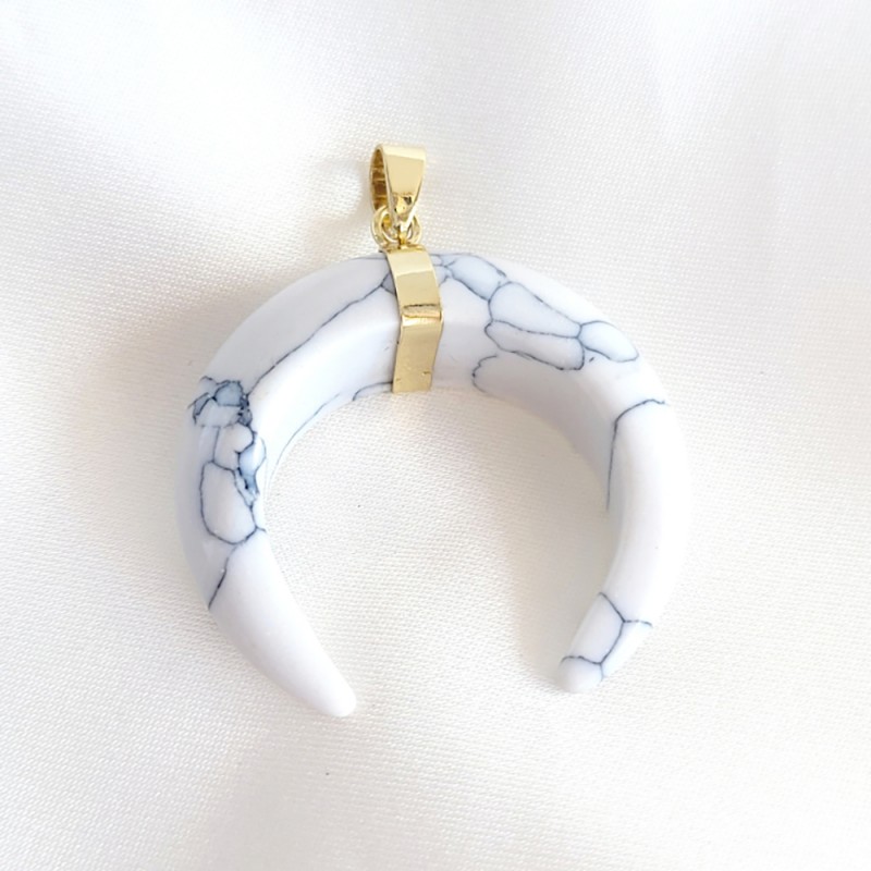 1pendentif corne ou croissant de lune en pierre naturelle howlite