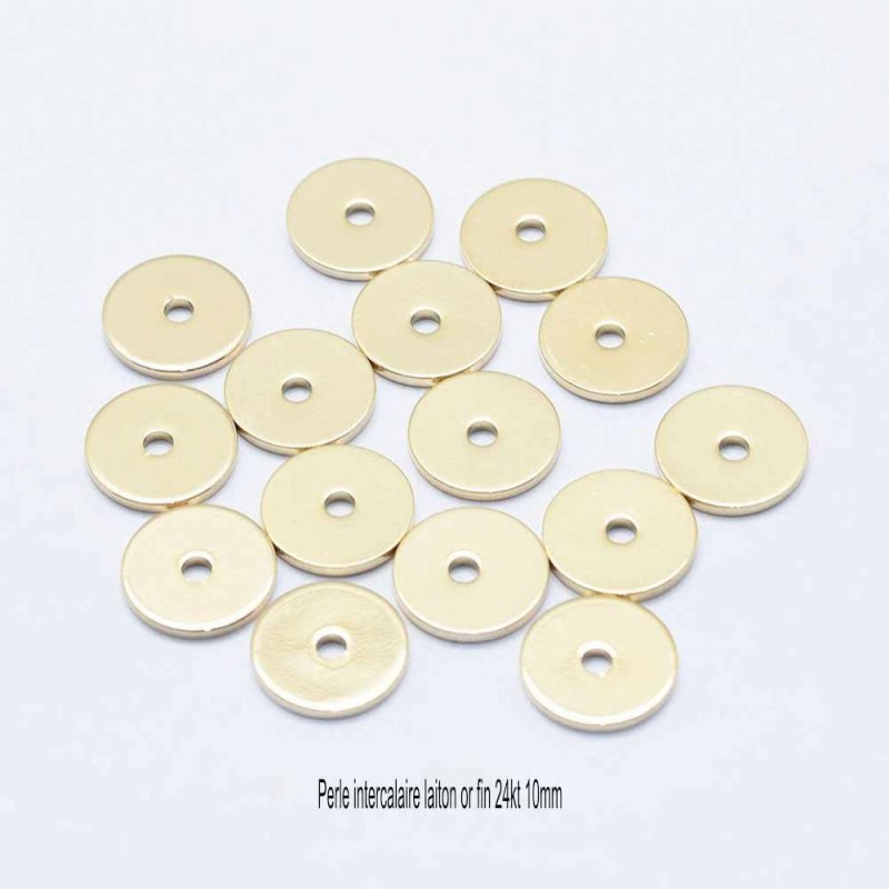 perle intercalaire ronde plate laiton or 24kt 10mm
