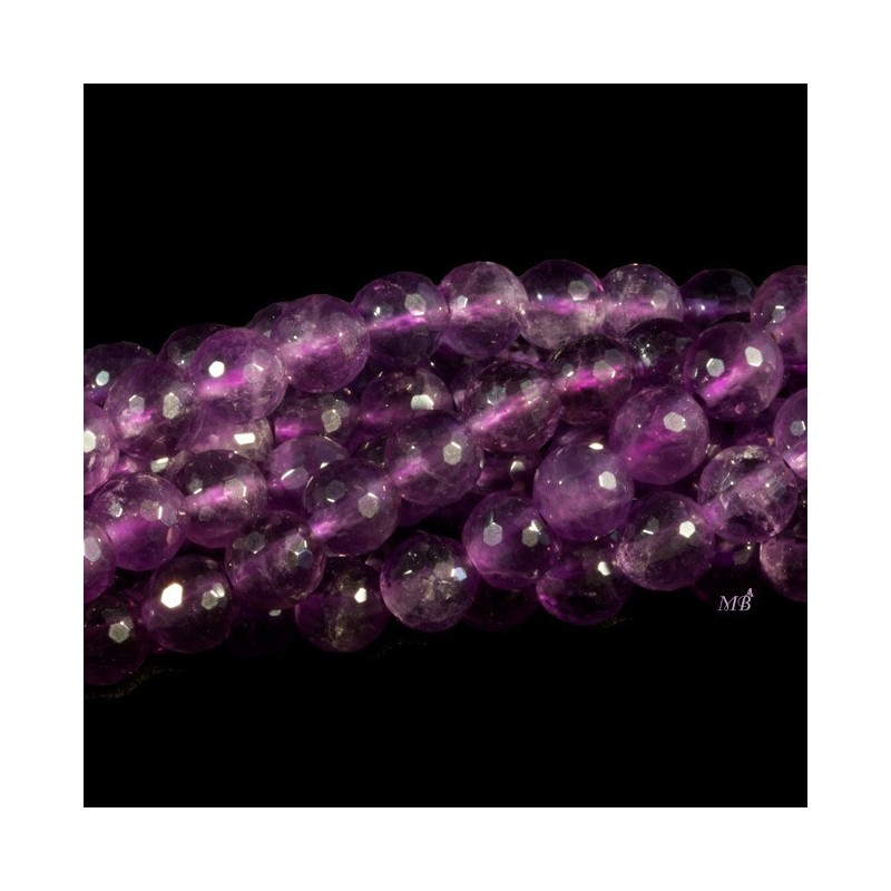 10 perles d'améthyste claires rondes facettée 6mm, améthyste claires ronde diamètre du trou 1mm, qualité supérieure pour ces perles d'améthystes du BRÉSIL ne contenant pas d'inclusion