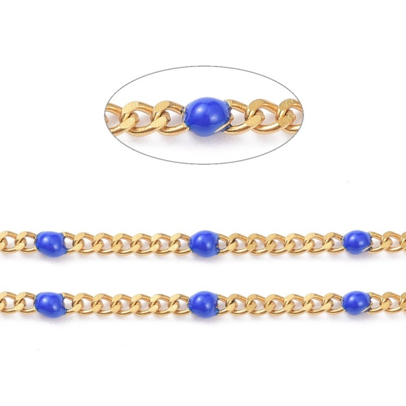 chaine acier inoxydable or émaillé bleu royal soudée